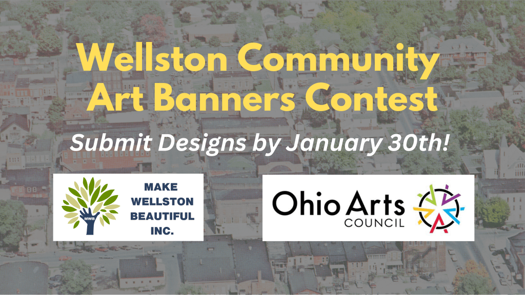Make Wellston Beautiful, Inc., with generous support from the Ohio Arts Council, is seeking art designs from residents and local young people for new banners to be installed in downtown Wellston. Thanks to the generous support of an Ohio Arts Council ArtsRise grant, MWB has received funding to custom-design and install street pole banners to freshen up the appearance of our city while showcasing local talent.