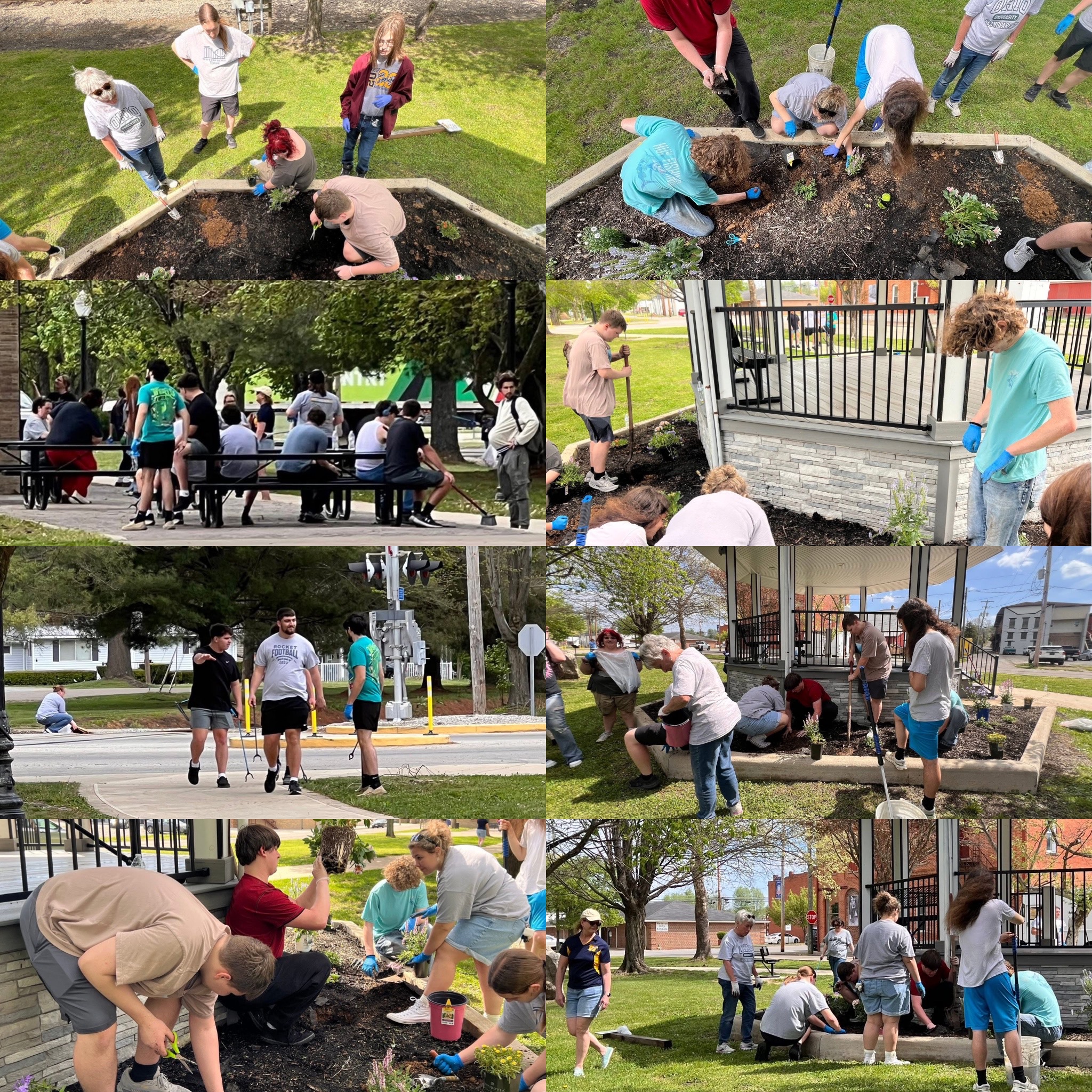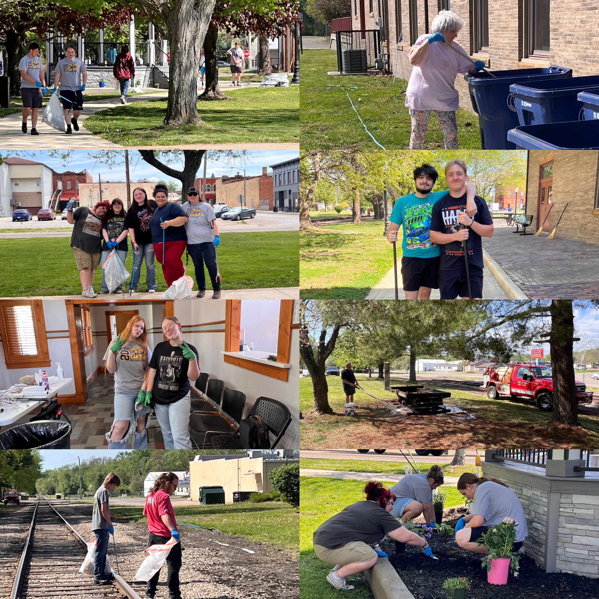 Each year involves various projects. This year, The Depot was cleaned inside, and litter was picked up in the park, downtown area, bike path, and Jeff Montgomery Way. The gazebo was washed, then plants were planted around it, followed by mulch.